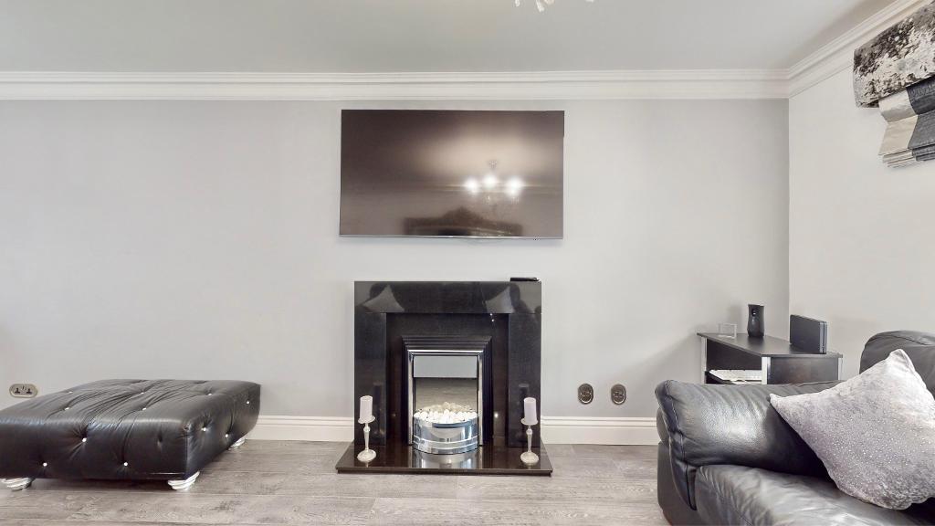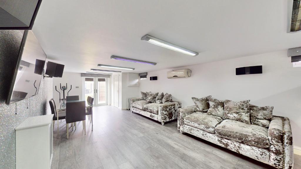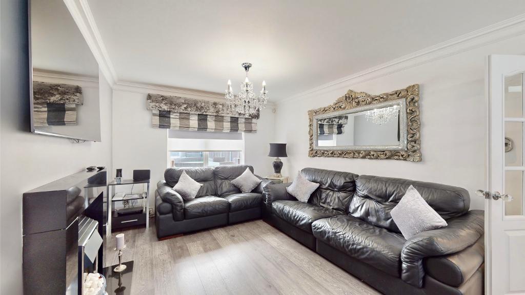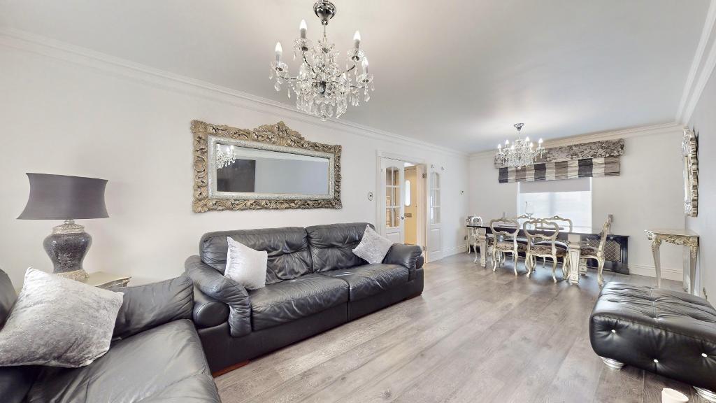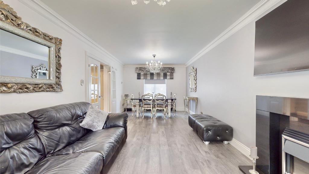 23' 8'' x 10' 9'' (7.23m x 3.29m) Double doors complete with flat plastered ceiling and walls complete with grey wooden flooring. A fire place in ornate surround with two double radiators and UPVC double glazed window to front and rear aspect.