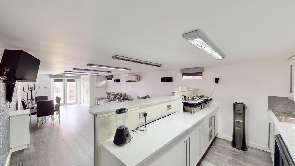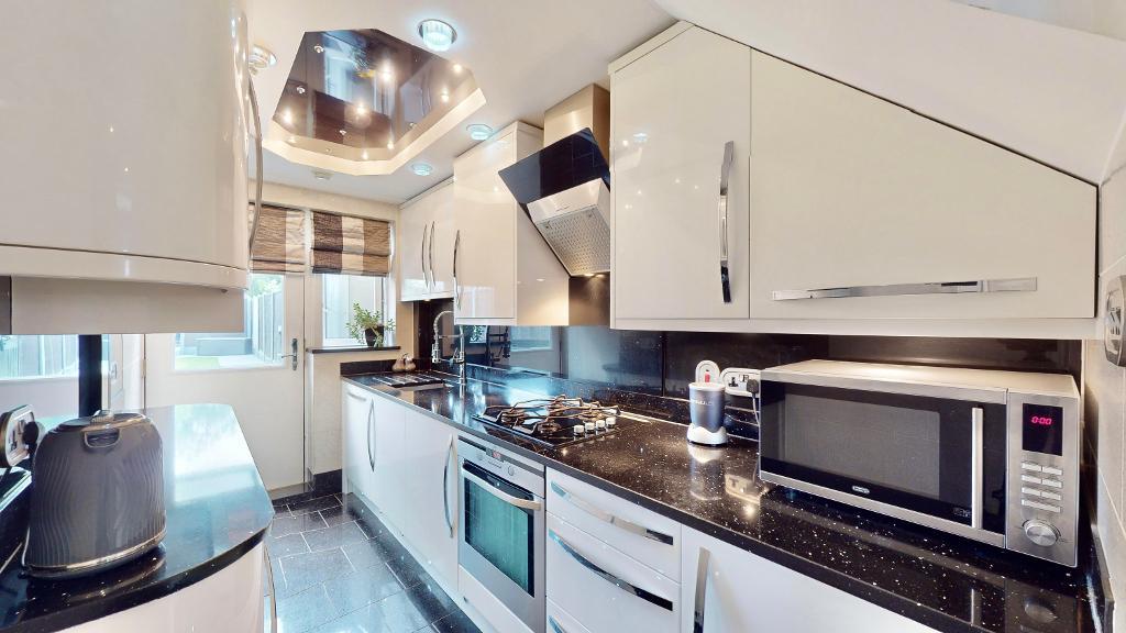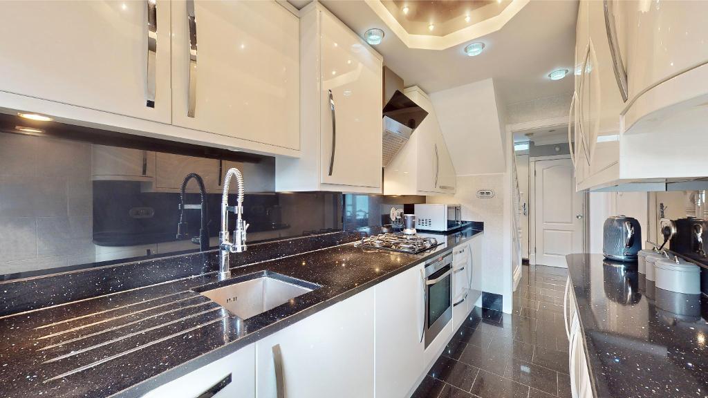 13' 10'' x 6' 3'' (4.24m x 1.91m) Eye and base level units, with granite/quartz work tops, flooring and splash backs.Intergrated appliances including washing machine and dishwasher. Four ring gas hob with built in oven . Bowl sink and mixer tap and flat plastered ceiling with spotlights.