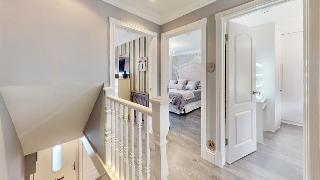 7' 1'' x 10' 9'' (2.18m x 3.29m) Wooden floor, fitted wardrobes, flat plastered walls and ceiling with feature wallpaper and spotlights in ceiling . Radiator with , double glazed UPVC window to front.