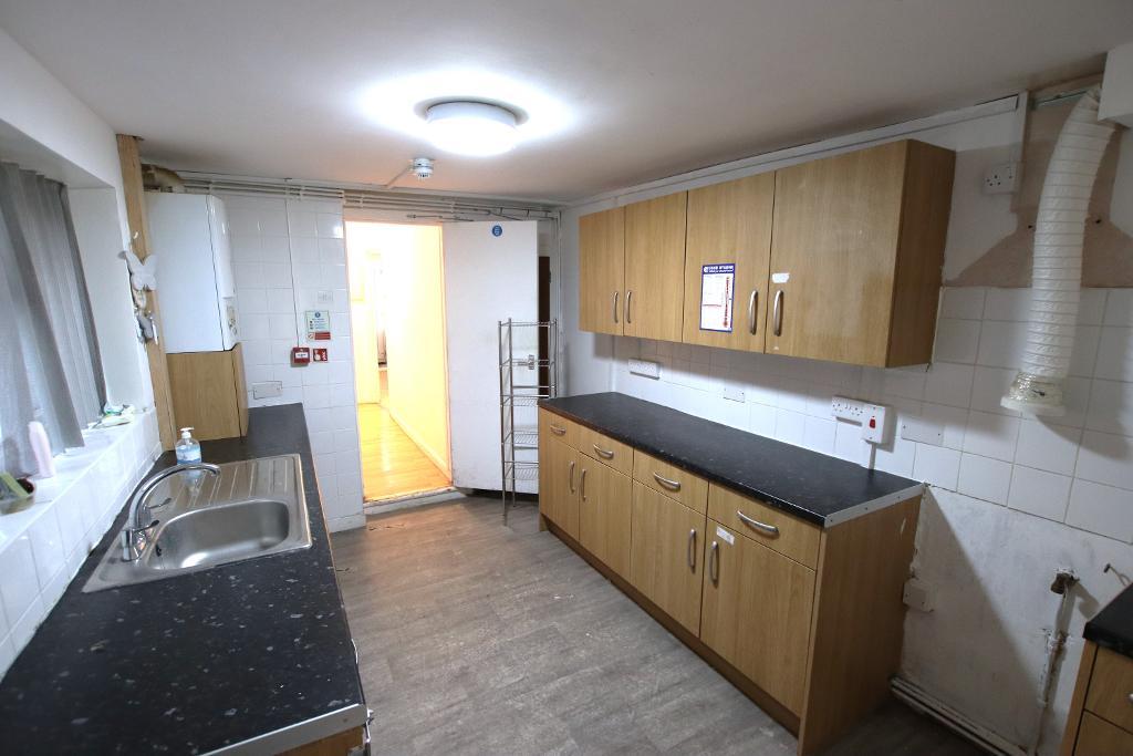 12' 2'' x 8' 5'' (3.72m x 2.58m) Eye and base level units with granite effect work tops, stainless steel sink with drainer & mixer tap, double glazed uPVC window to side aspect. Space for the following appliance; electric or gas oven & hob with extractor hood. Under stairs storage cupboard, wall mounted gas combi boiler (Untested on inspection), ceramic tiled walls and floor, wood effect vinyl flooring.