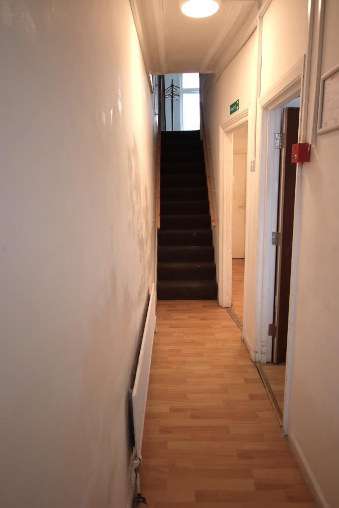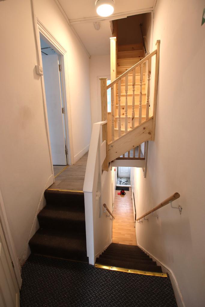 14' 2'' x 4' 10'' (4.33m x 1.48m) Grey wood effect vinyl flooring, flat plastered walls, stairs to loft room, doors to