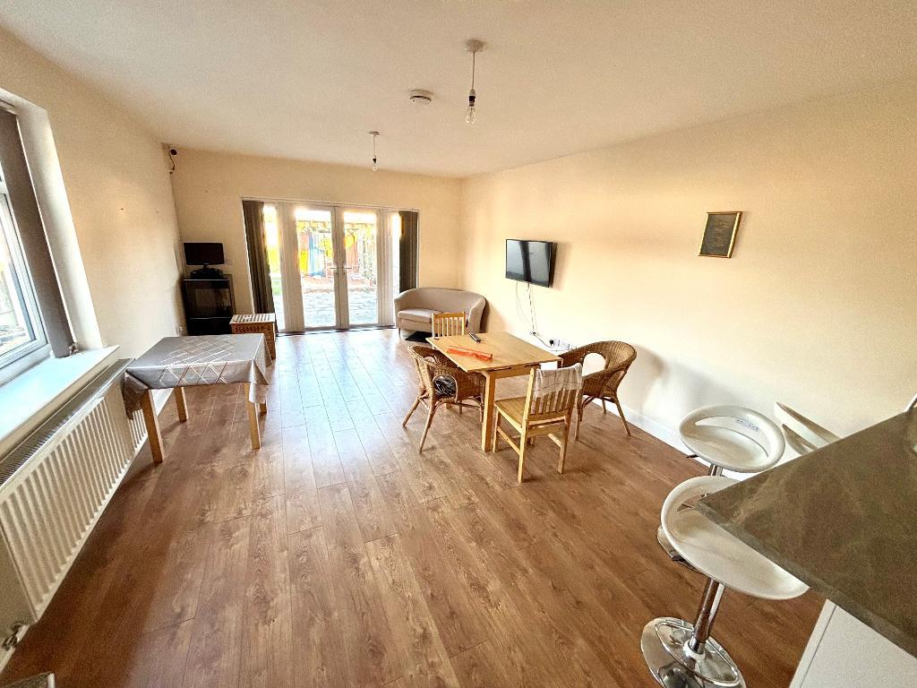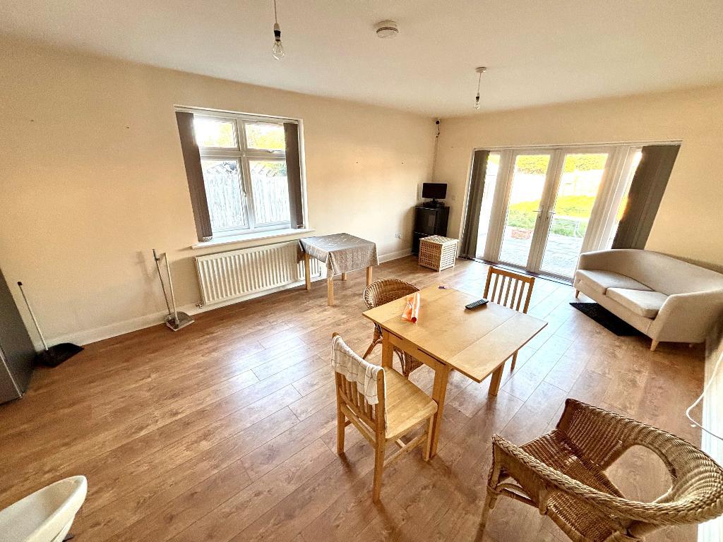 Living Area - Laminate flooring, radiator, flat plastered ceiling and walls, double glazed uPVC window to side aspect, double glazed uPVC double doors to garden.